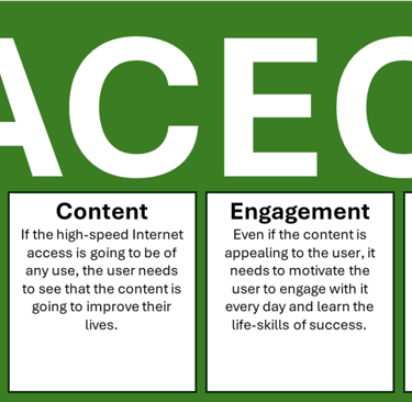 Phase 1 (year 1 with 500k students signed up with laptops and broadband access) - start showcase in the country with 500k students = about 2 million adults who are actively supporting democratic principles of prosperity and freedom. Implement the PR campaign that shows how a country that partners with the US, becomes prosperous and joins them in leading the world.